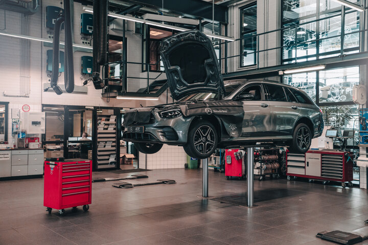 De Service Drive-In bereikt u via de linkerkant van ons pand. Uw auto wordt bij binnenrijden automatisch gecontroleerd op bandenprofiel, uitlijning en schades. Uw serviceadviseur helpt u bij uitstappen direct verder en stelt eventueel een eerste diagnose.