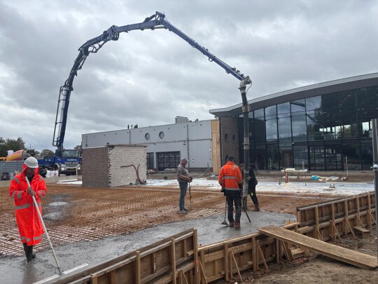 Vandaag is een belangrijke mijlpaal bereikt: de vloer wordt gestort! Daarmee krijgt ons pand letterlijk een stevige basis voor de volgende fase van de werkzaamheden.
